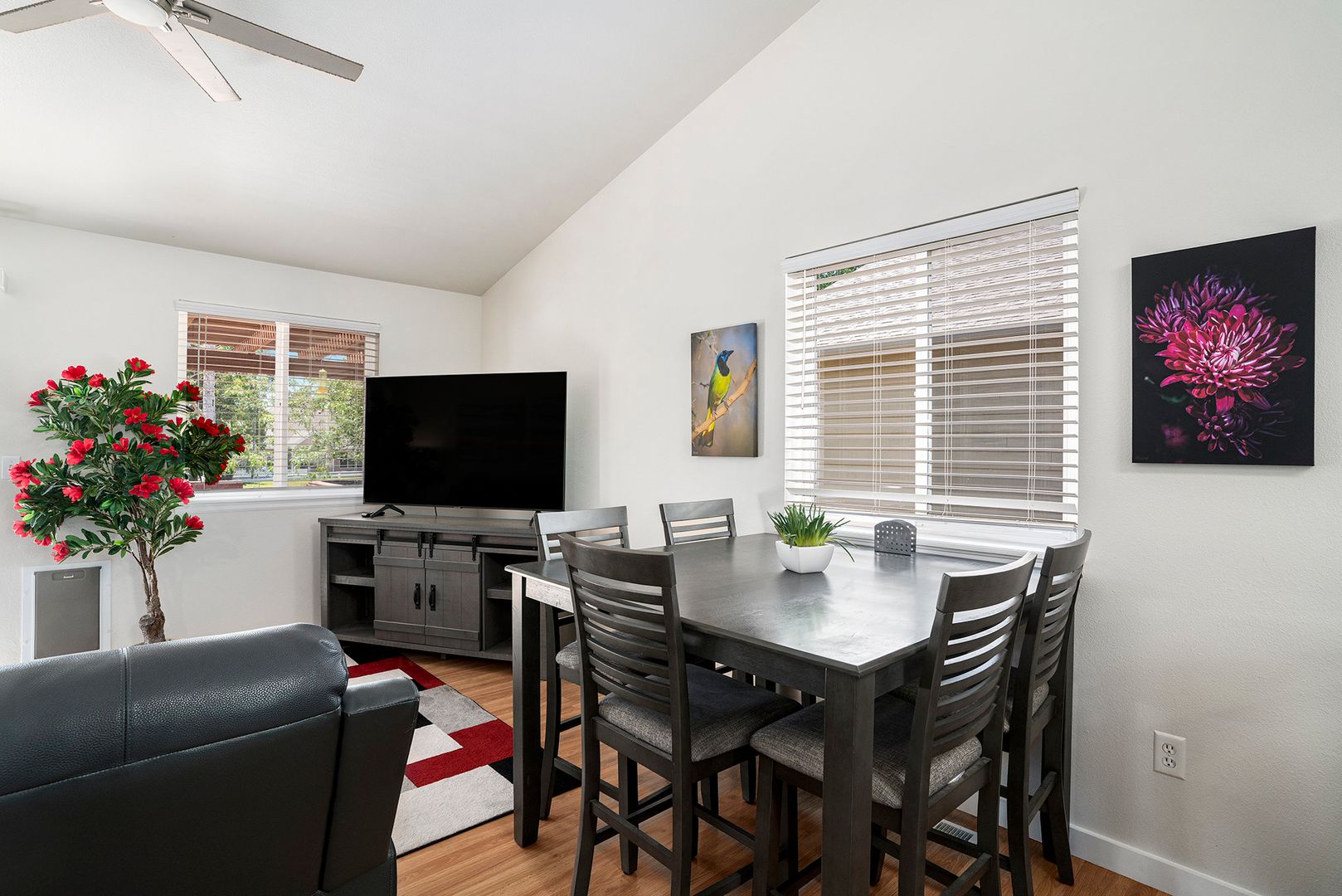 This is a great 5 bed 3 bath house with many features. Some of the wonderful features include: a fully finished 2 bedroom basement with a master bedroom suite (both bedrooms have microwave and plank flooring, 2 sets of laundry centers and microwave. Also, fenced yard with patio, deck and patio furniture, walk in closets, wall mounted TVs, ceiling fans, central ac, stainless steel appliances, just to name a few. Property is close to foothills, trails and other outdoor amenities. Must See!